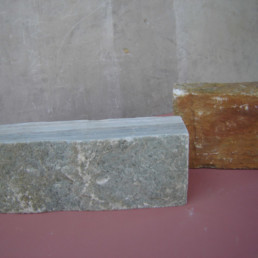 Πέτρα με φυσική επιφάνεια σε χρωματισμό κόκκινο-μπεζ και γκρι-μπλε-μαύρο.