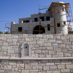 Μπεζ ασβεστολιθικό πέτρωμα κατάλληλο για κτίσιμο και επένδυση τοίχων. Διατίθεται σε διάφορες μορφές.