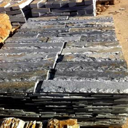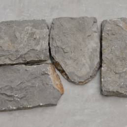 Πέτρα με φυσική επιφάνεια στην εμπρός όψη, κομμένο ίσιο πίσω και πλάι. Χρωματισμός γκρι-πράσινο, καφέ-μπεζ ή ανάμικτο.