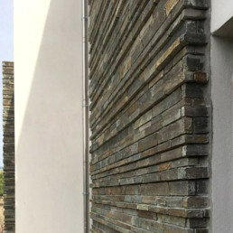 Πέτρα με φυσική επιφάνεια στην εμπρός όψη , κομμένο ίσιο πίσω και πλάι (κάποια κομμάτια κομμένα ίσια και πάνω, κάτω) για πιο εύκολη τοποθέτηση. Χρωματισμός ανάμικτος γκρι-πράσινο και καφέ-μπεζ.